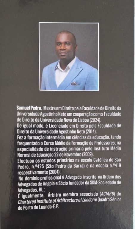 Com 156 páginas, o livro resulta da sua dissertação de Mestrado em Ciências Jurídicas e Empresariais, concluída em 2024, na Faculdade de Direito da Universidade Agostinho Neto.